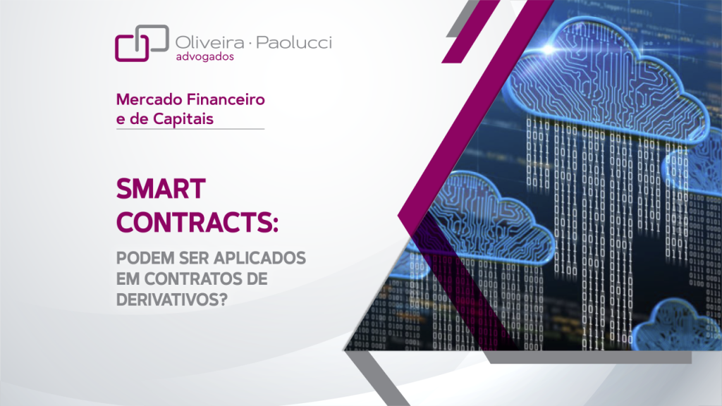 O contrato derivativo tem como principal função proteger os agentes financeiros contra os riscos de mercado e disseminar os riscos envolvidos nas transações efetuadas. É um instrumento financeiro no qual o valor deriva de algo, seja de ativos subjacentes, taxa de referência ou índice. Para usá-lo como um smart contract, todas as condições antevistas nos derivativos, como por exemplo: taxa de juros, valor do câmbio, etc., deveriam ser incluídas na rede blockchain onde o smart contract estivesse inserido, para que a obrigação consequente desta variação fosse realizada automaticamente, de acordo com pré-determinada condição, sem nenhuma interferência das partes ou de terceiros. Entretanto, apesar de apresentarem, em teoria, os requisitos básicos para sua aplicação em derivativos, os smart contracts somente poderão ser aplicados nos contratos de derivativos após regulamentação específica da Comissão de Valores Mobiliários, especialmente no que se refere à criação de uma tecnologia necessária para viabilizar esta aplicação, o que inclui uma rede blockchain e a conferência de chaves de segurança na utilização dos usuários.